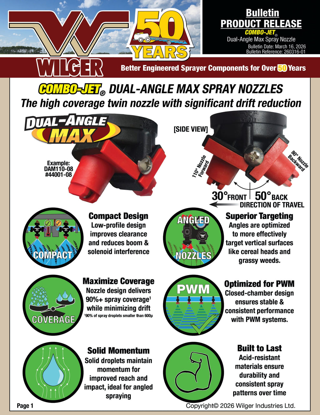 This means applicators benefit from the same trusted spray performance they’ve come to rely on with other COMBO-JET nozzles, while gaining the added advantage of dual-angle coverage, and much more compact form factor of the new dual-cap design.